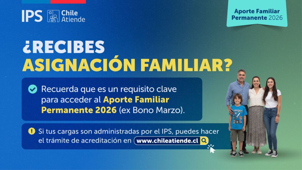 ¿Recibes Asignación Familiar? ,Es un requisito clave para acceder al Aporte Familiar Permanente 2026  El IPS recuerda a las personas que, para tener derecho al Aporte FamiliarPermanente (ex Bono Marzo) el próximo año, deben recibir el pago de laAsignación Familiar por sus cargas al mes de diciembre de 2025. El Instituto de Previsión Social